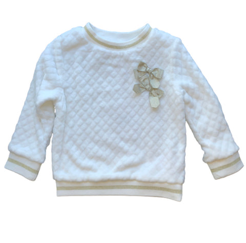 Soft fleece sweater with gold trim and glitter bows