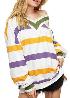 Oversized Destroyed Striped V-Neck Top