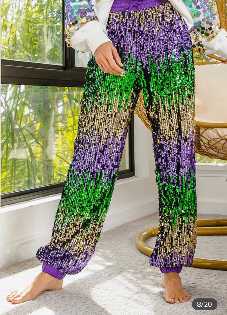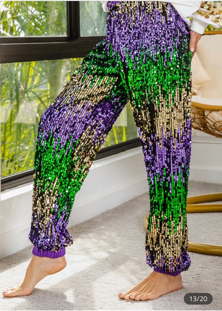 Mardi Gras sequin joggers