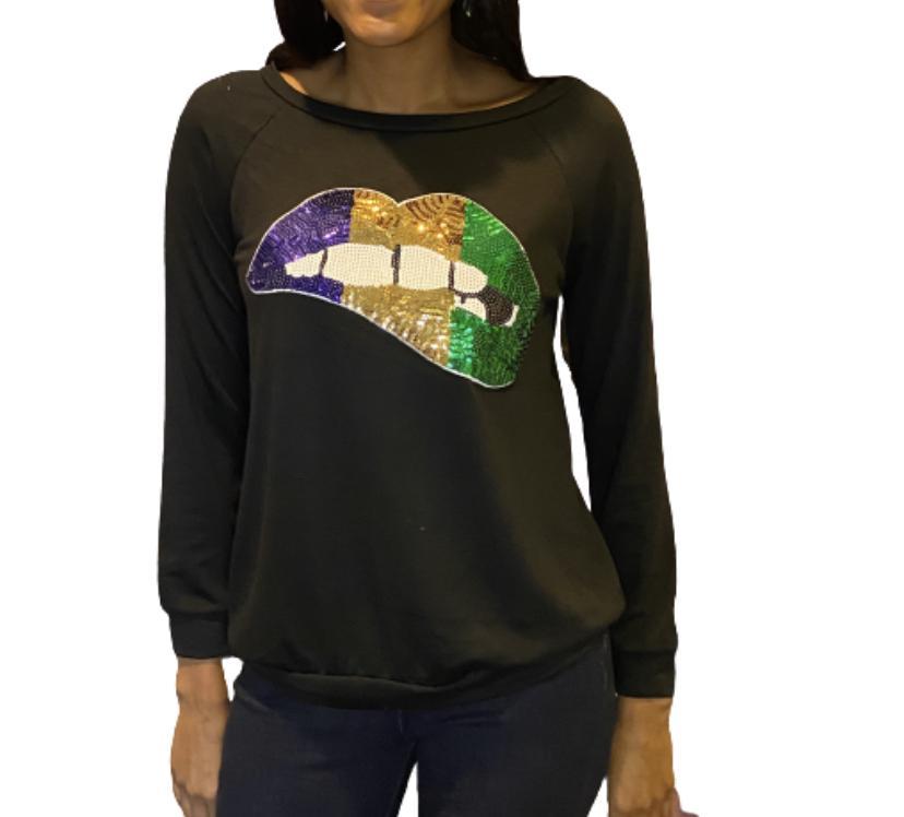 Sequin lip knit top