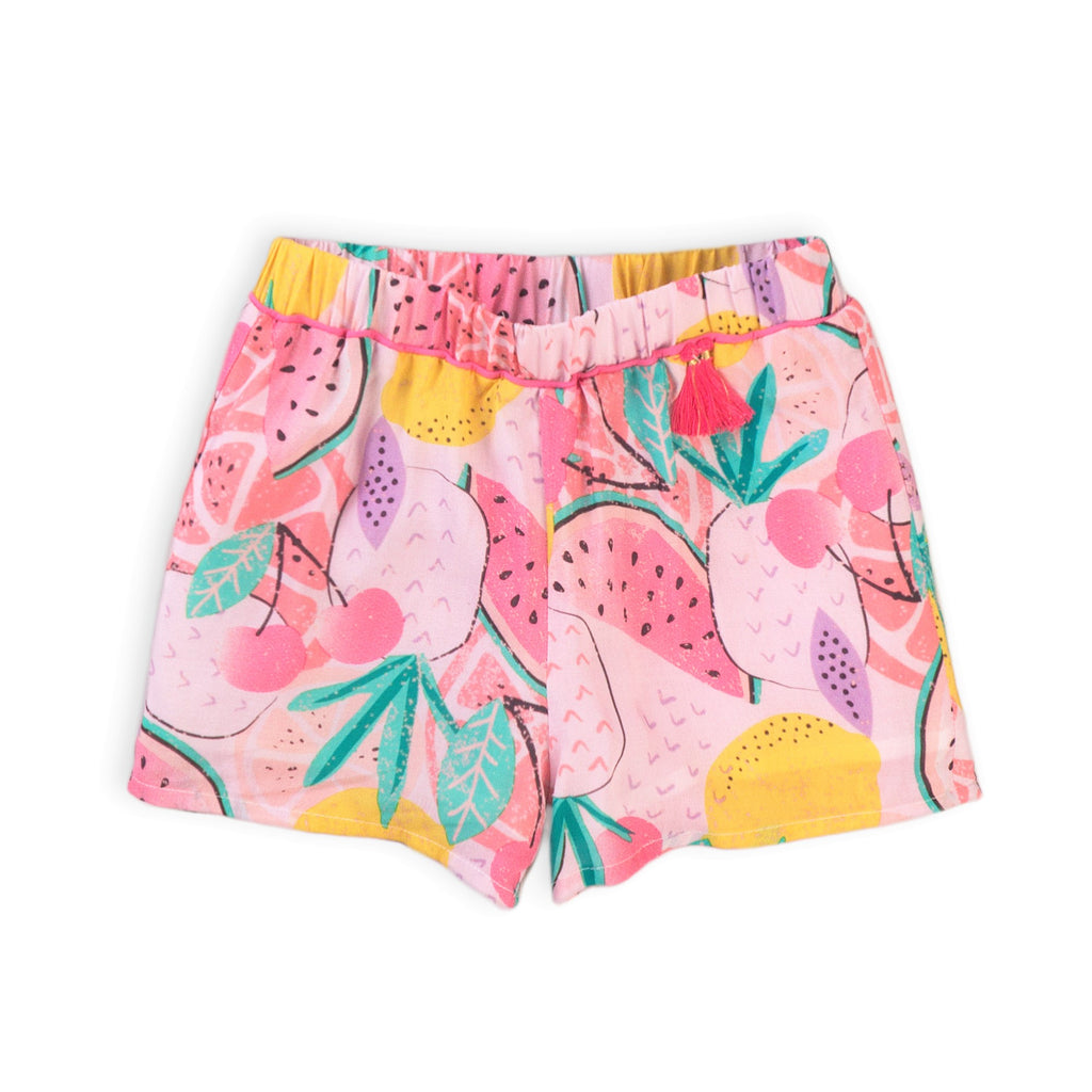 Fruit print shorts with side tassel
