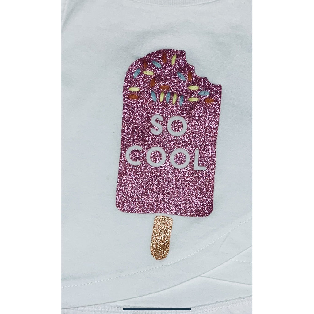 Shoulder tie tank with an asymentrical font along with glitter and bead details